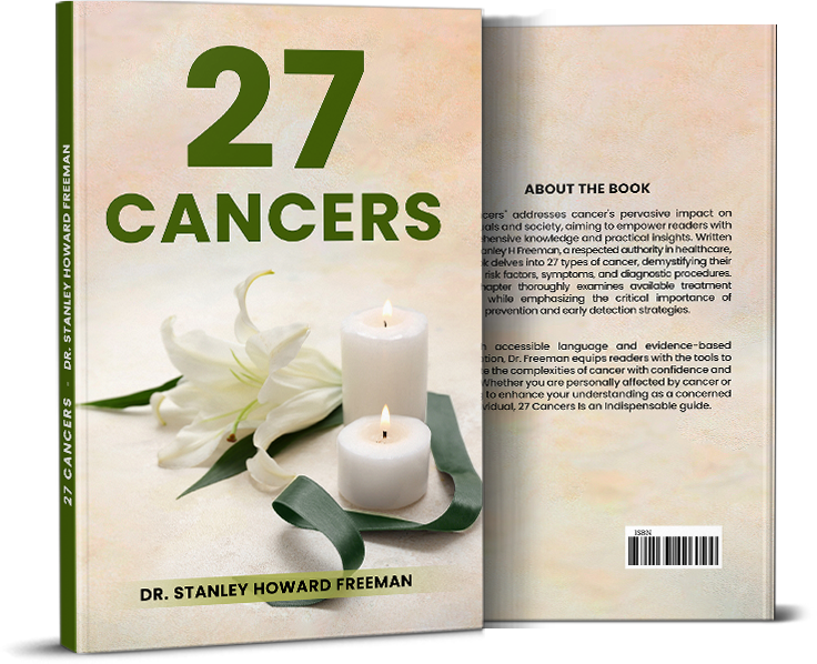 Dive into the fusion of emotional stories and scientific knowledge through 27 Cancers by Dr. Stanley H. Freeman. Discover information designed to empower individuals to pursue benefits and cures. Understand the causes and symptoms of various cancers to aid yourself or a loved one, investigate critical issues and treatments, and confront the psychological effects that can exacerbate health and the disease.